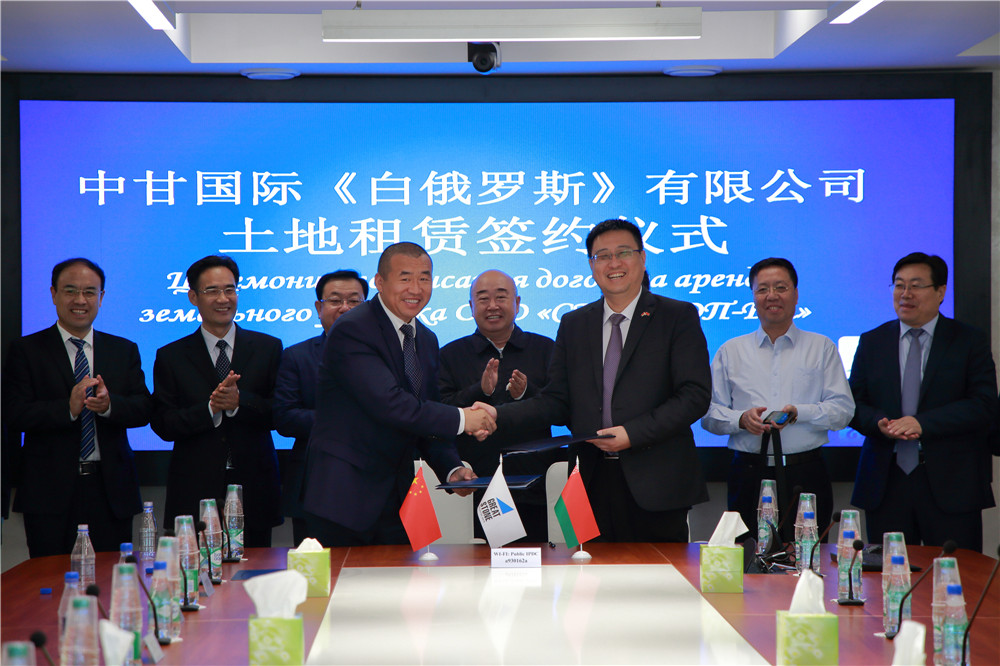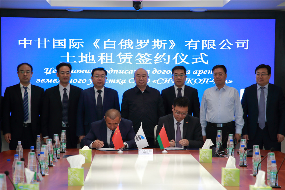 2018年8月23日上午,甘肅省國資委副主任車(chē)洪考察中白工業(yè)園,甘肅建設投資(控股)集團董事長(cháng)、中國甘肅國際經(jīng)濟技術(shù)合作總公司總經(jīng)理蘇躍華,中白工業(yè)園區開(kāi)發(fā)公司總經(jīng)理李海欣等領(lǐng)導陪同考察。在車(chē)洪、蘇躍華、李海欣等領(lǐng)導的見(jiàn)證下,中甘國際白俄羅斯公司總經(jīng)理楊立澤與開(kāi)發(fā)公司副總經(jīng)理任飛簽訂土地租賃協(xié)議。
