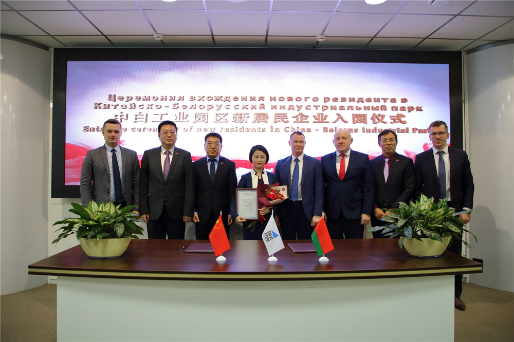 2019年1月3日上午,中白工業(yè)園招商引資工作迎來(lái)開(kāi)門(mén)紅,微智國際(白俄羅斯)有限責任公司(下稱(chēng)“微智國際”)成為園區的第42家居民企業(yè),中白工業(yè)園管委會(huì )副主任列曉諾克,副主任貢恰羅夫,園區開(kāi)發(fā)公司總經(jīng)理李海欣,微智國際首席代表包瑩出席了入園儀式。儀式上,列曉諾克與包瑩簽訂了入園協(xié)議,并頒發(fā)了入園證書(shū),李海欣與包瑩共同為企業(yè)揭牌。
