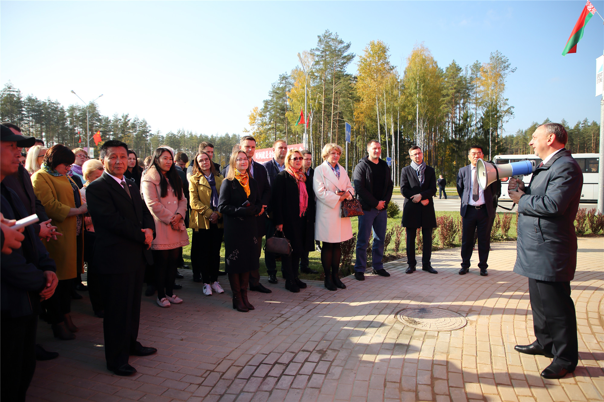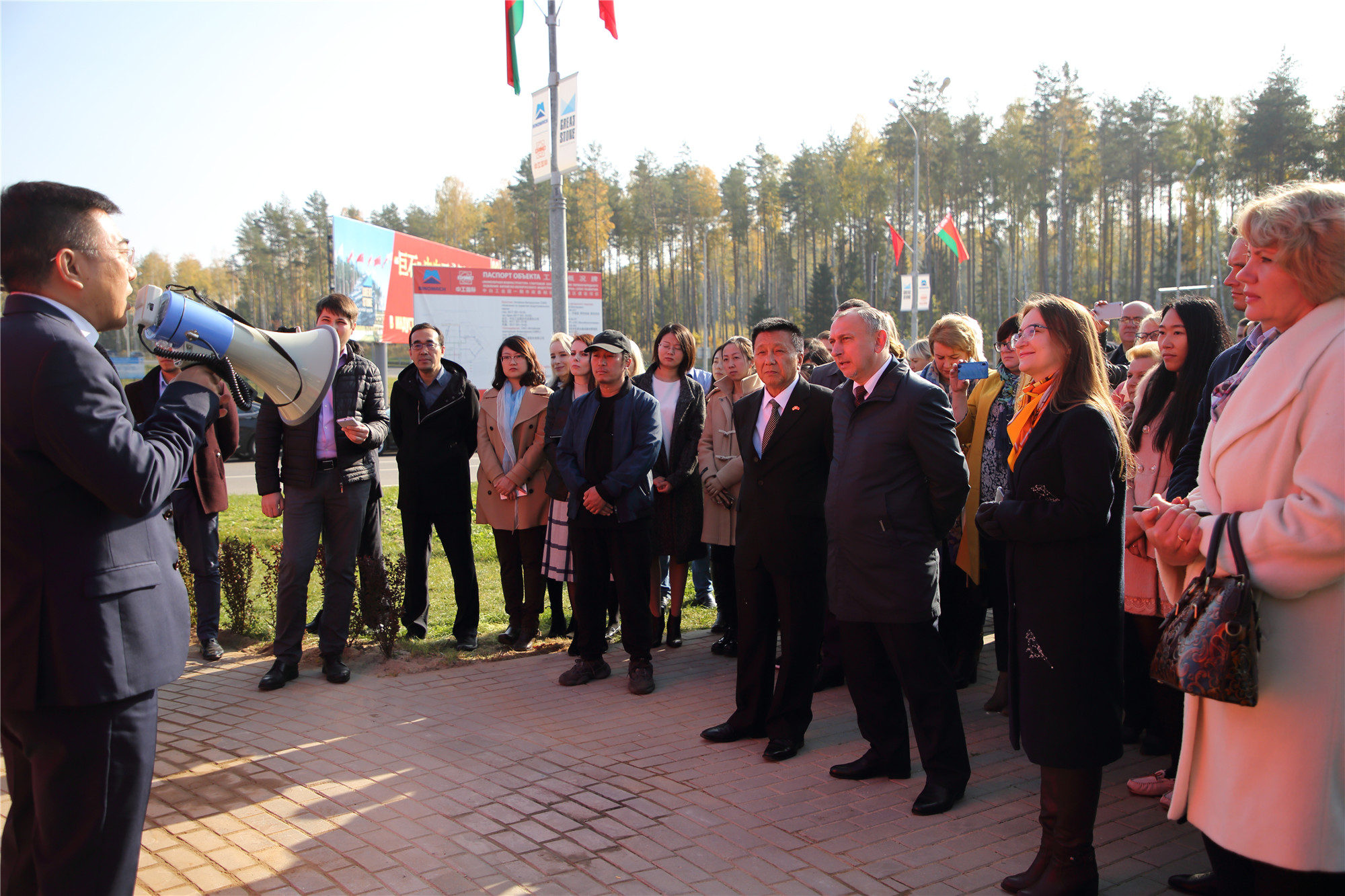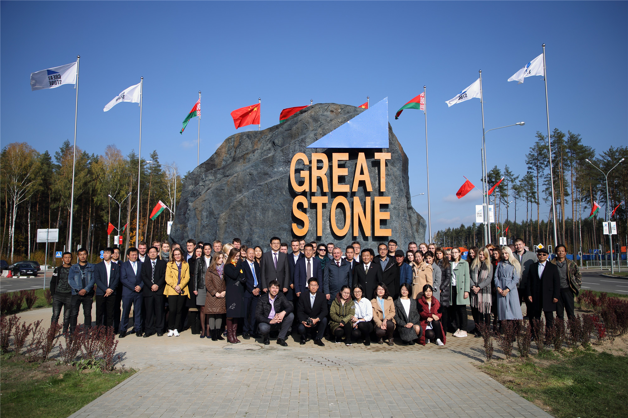 2018年10月11日上午,中白工業(yè)園在園區1號路主入口處舉行了“巨石”標志揭牌儀式。參加此儀式的有中白工業(yè)園區管委會(huì )主任亞羅申科,中白工業(yè)園區開(kāi)發(fā)股份有限公司CEO胡政、總經(jīng)理李海欣等。