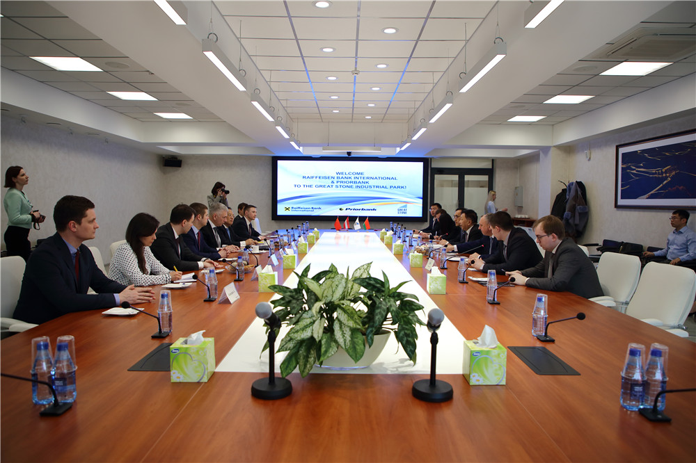 簽約儀式舉行前,管委會(huì )、開(kāi)發(fā)公司與奧地利奧合國際銀行、白俄羅斯Prior銀行舉行會(huì )談。會(huì )談上,亞羅申科向銀行代表對園區的關(guān)系表示感謝。胡政向與會(huì )銀行家詳細介紹了園區的建設歷程、運營(yíng)管理情況和發(fā)展計劃,并表示,園區始終積極的與銀行展開(kāi)合作,園區的項目需要銀行界的支持和幫助,希望園區與Prior銀行建立更加良好的合作關(guān)系。(投資服務(wù)中心 文/圖)