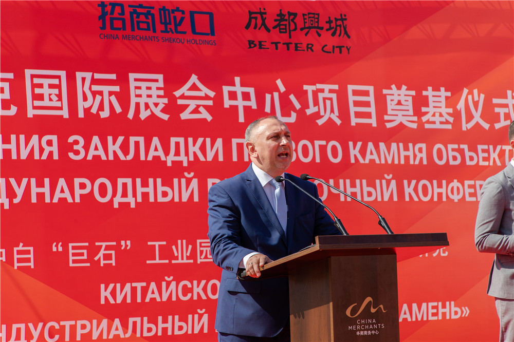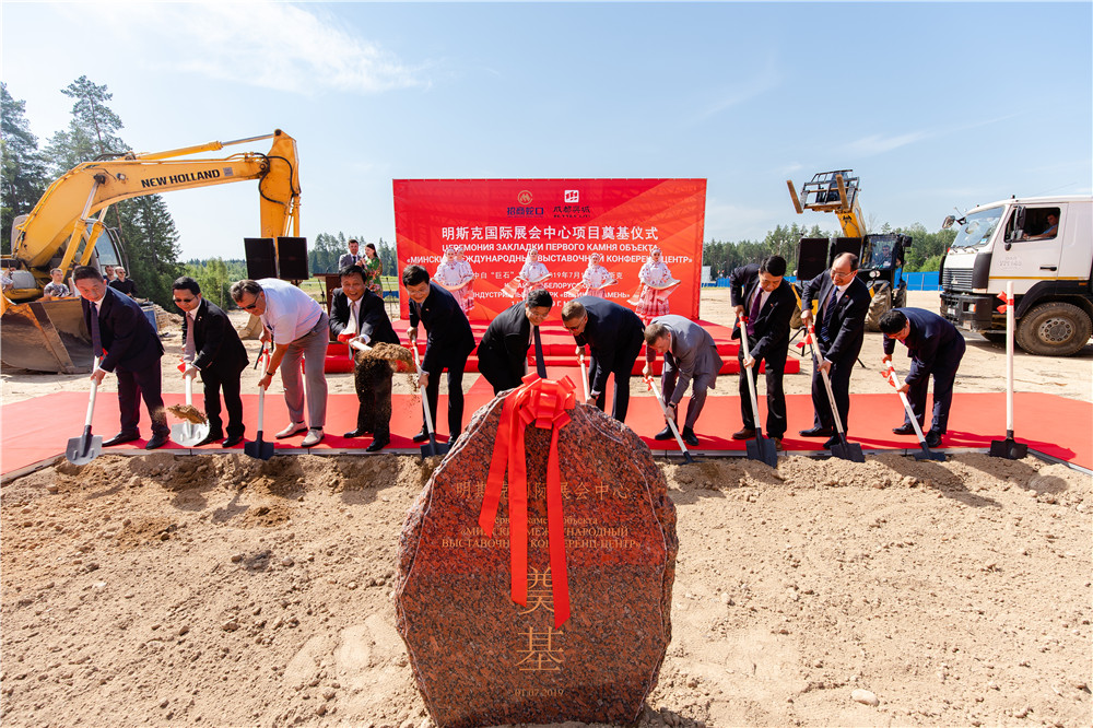 仲夏的中白工業(yè)園洋溢著(zhù)喜慶的節日氣氛。7月1日上午,由招商蛇口和成都興城集團共同投資的明斯克國際展會(huì )中心項目奠基儀式在中白工業(yè)園隆重舉行。中國駐白俄羅斯特命全權大使崔啟明,白俄羅斯緊急情況部第一副部長(cháng)胡多列耶夫,白俄羅斯住建部副部長(cháng)阿納尼奇、中白工業(yè)園區管委會(huì )主任亞羅申科等白俄羅斯政府官員。招商局集團副總經(jīng)理鄧仁杰,集團駐白俄羅斯代表處首席代表、中白工業(yè)園區開(kāi)發(fā)公司CEO胡政,招商蛇口財務(wù)總監黃均隆等領(lǐng)導出席了項目奠基儀式。