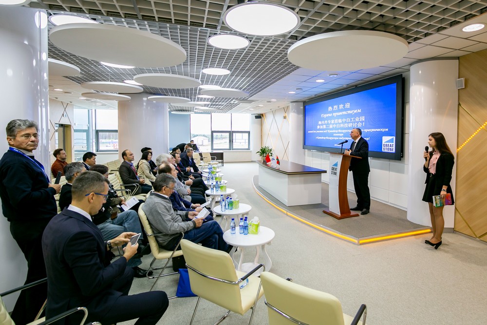2019年9月19日,第二屆中白科技研討會(huì )在園區順利舉辦,本次活動(dòng)由白俄羅斯國立信息技術(shù)無(wú)線(xiàn)電電子大學(xué)、中國南方科技大學(xué)、中白工業(yè)園區開(kāi)發(fā)股份有限公司等單位聯(lián)合舉辦。園區管委會(huì )主任亞羅申科、開(kāi)發(fā)公司副總經(jīng)理兼總經(jīng)濟師徐保民代表園區出席了本次活動(dòng)并致辭。