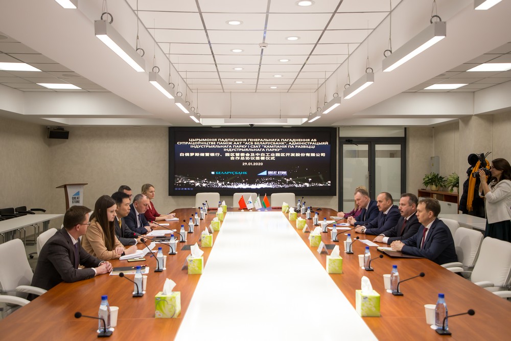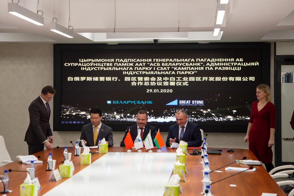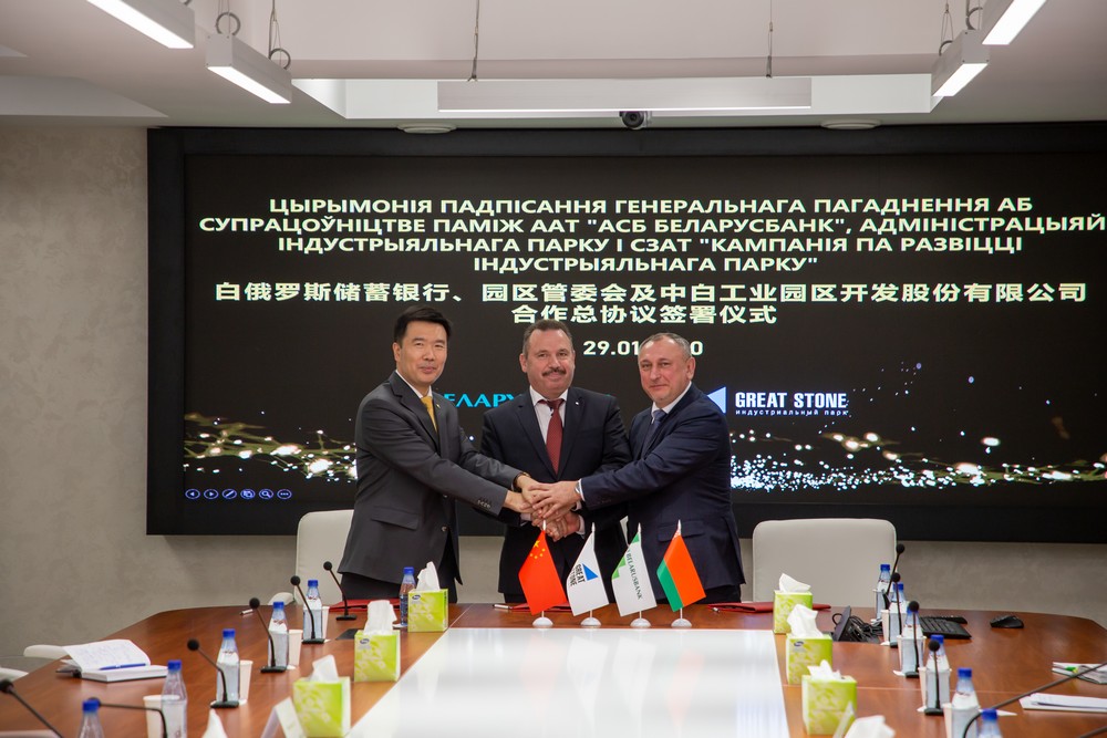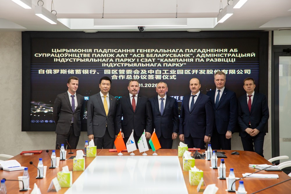 2020年1月29日下午,中白工業(yè)園管委會(huì )、中白工業(yè)園區開(kāi)發(fā)股份有限公司與白俄儲蓄銀行的合作協(xié)議簽署儀式在中白工業(yè)園區舉行,中白工業(yè)園管委會(huì )主任雅羅申科、中白工業(yè)園區開(kāi)發(fā)公司總經(jīng)理嚴剛以及白俄儲蓄銀行董事長(cháng)阿納尼奇簽署了合作協(xié)議。