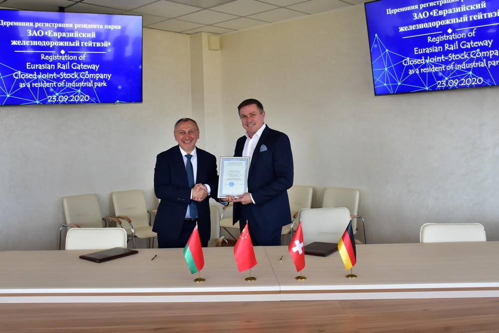 2020年9月23日,亞歐陸運通道股份有限公司(СЗАО "Евразийский железнодорожный Гейтвэй")注冊成為園區居民企業(yè),該公司將在園區二區內投資建設運營(yíng)貨運鐵路場(chǎng)站。中白工業(yè)園鐵路場(chǎng)站項目一期總投資額3150萬(wàn)歐元,規劃占地面積80公頃,計劃于2021年3月開(kāi)展前期建設工作,預計貨物運輸量將達到18萬(wàn)TEU。