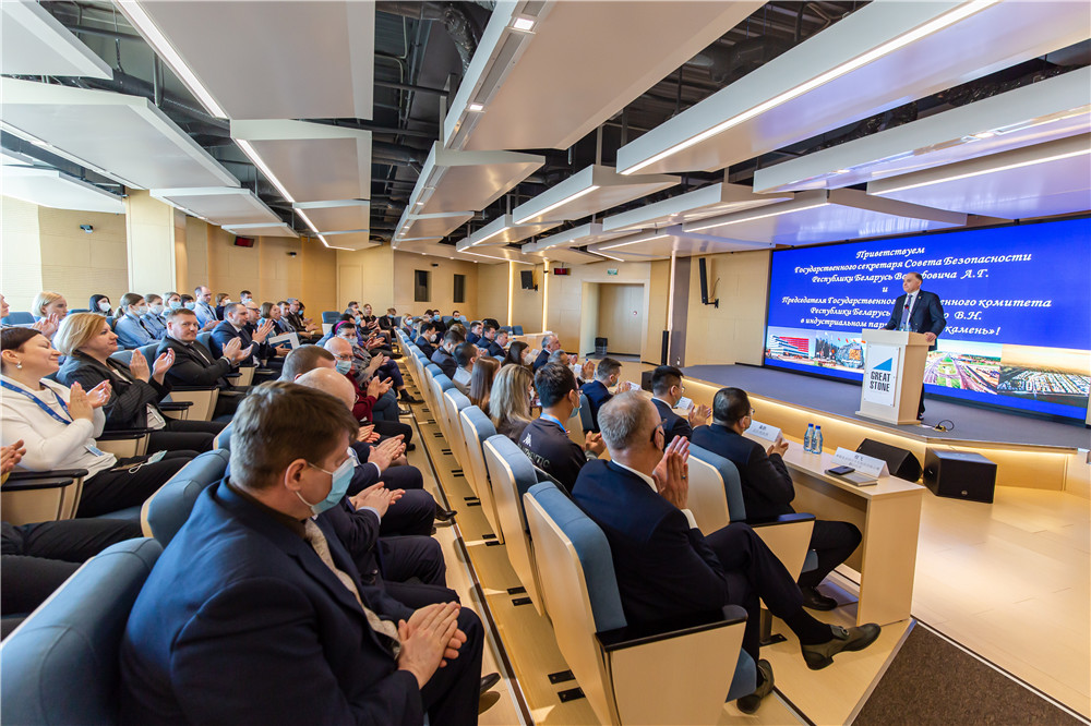 亞羅申科主任和李鐘漢總經(jīng)理向沃爾福維奇國務(wù)秘書(shū)表示熱烈歡迎,并介紹了園區在基礎設施建設、產(chǎn)業(yè)發(fā)展、推動(dòng)中白兩國經(jīng)貿合作所取得的相關(guān)進(jìn)展,沃爾福維奇國務(wù)秘書(shū)對園區的建設和發(fā)展予以肯定。隨后,沃爾福維奇國務(wù)秘書(shū)就白俄羅斯及周邊區域焦點(diǎn)事件及與各國合作關(guān)系等內容進(jìn)行了專(zhuān)題演講,在提及中白經(jīng)貿合作及園區發(fā)展時(shí),他強調,白俄羅斯當前的首要任務(wù)是發(fā)展經(jīng)濟建設,隨著(zhù)中白兩國經(jīng)貿合作不斷發(fā)展,中國成為了白俄羅斯最重要的經(jīng)濟伙伴之一。中白工業(yè)園是中白兩國間重要的經(jīng)貿合作平臺,園區的發(fā)展將有效地促進(jìn)白俄羅斯經(jīng)濟發(fā)展,也將為鞏固中白雙邊關(guān)系發(fā)揮作用。