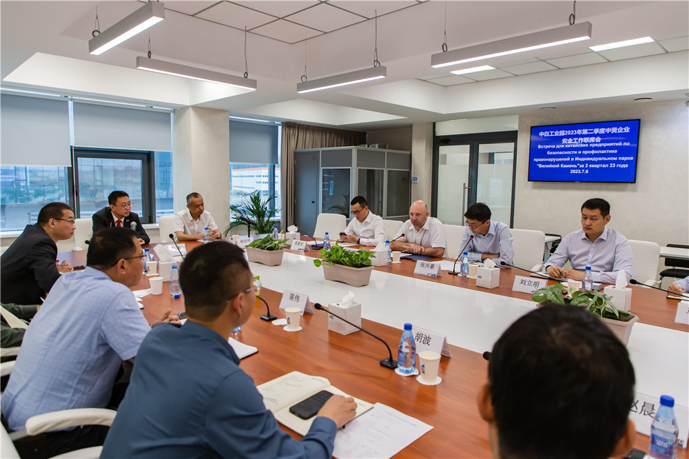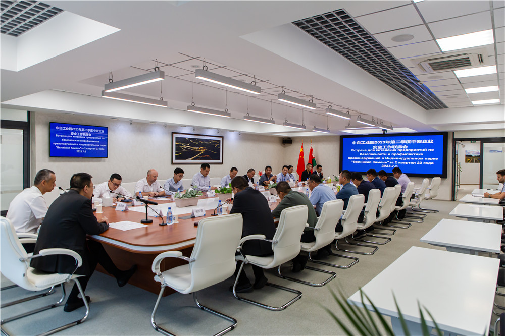7月6日,中白工業(yè)園2023 年第二季度中資企業(yè)安全工作聯(lián)席會(huì )在園區舉行,中白警務(wù)工作組組長(cháng)孫慶祥、園區開(kāi)發(fā)公司副總經(jīng)理任飛參加活動(dòng)并發(fā)言,園區十余家中資居民企業(yè)負責人或代表參加本次活動(dòng)。