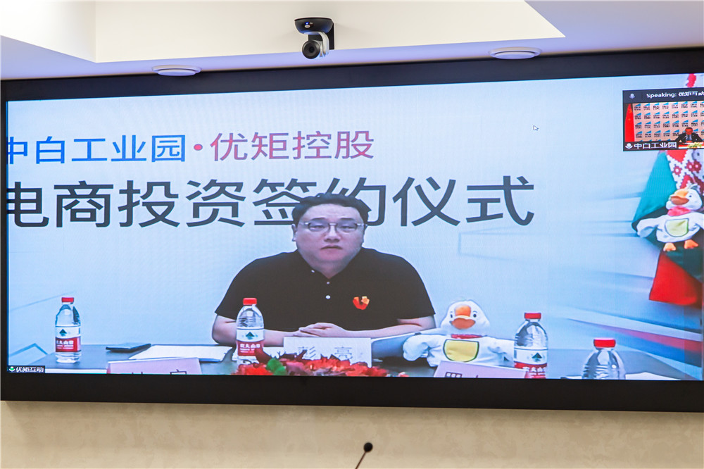 7月20日,中白工業(yè)園區開(kāi)發(fā)公司總經(jīng)理李鐘漢與優(yōu)矩控股集團CEO彭亮線(xiàn)上簽署《中白電商投資協(xié)議》,標志著(zhù)開(kāi)發(fā)公司正式入股杭州矩寶盆科技有限公司(以下簡(jiǎn)稱(chēng)“矩寶盆公司”),并參與“白俄羅斯國家館”項目的投資和運營(yíng)工作,隨后,李鐘漢總經(jīng)理和開(kāi)發(fā)公司副總經(jīng)理吳鵬分別作為矩寶盆公司股東代表和董事參加了股東大會(huì )和董事會(huì )。