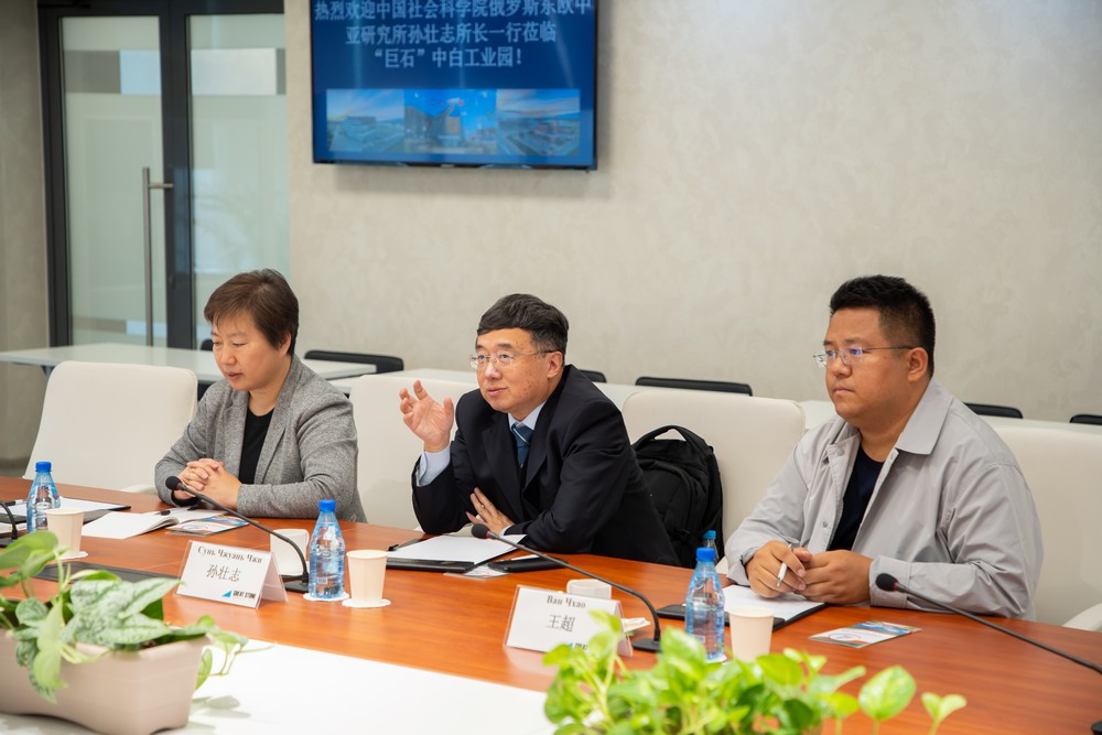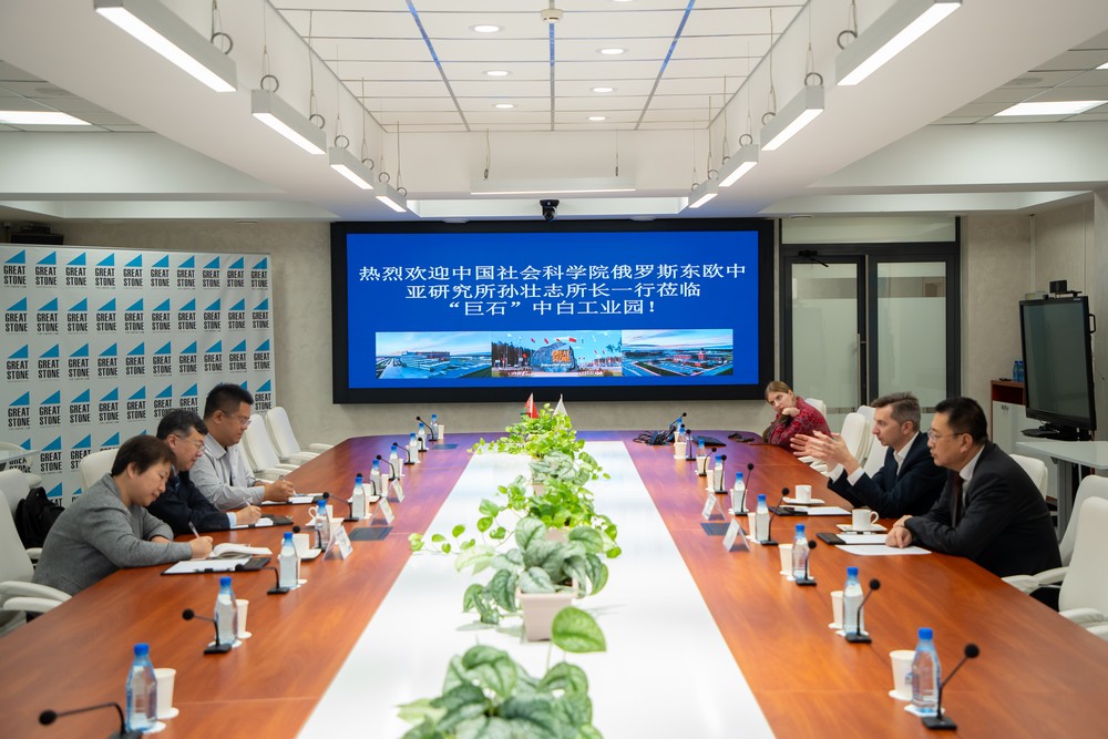 10月27日下午,中國社會(huì )科學(xué)院俄羅斯東歐中亞研究所所長(cháng)孫壯志調研中白工業(yè)園,與園區開(kāi)發(fā)公司第一副總經(jīng)理卡羅捷耶夫、副總經(jīng)理任飛舉行會(huì )談。