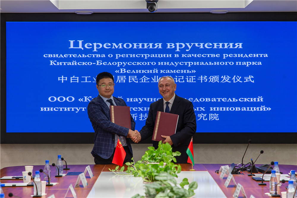 9月14日,山東省委常委、組織部部長(cháng)王宇燕考察中白工業(yè)園,與園區管委會(huì )主任亞羅申科、白俄羅斯國家科學(xué)院第一副主席齊日科、開(kāi)發(fā)公司總經(jīng)理李鐘漢舉行會(huì )談,并共同見(jiàn)證山東省科學(xué)院白俄羅斯研究中心簽約成為園區居民企業(yè)。