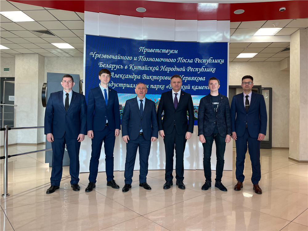3月3日,白俄羅斯駐華大使切爾維亞科夫調研中白工業(yè)園,與中白工業(yè)園區管委會(huì )主任亞羅申科、園區開(kāi)發(fā)公司第一副總經(jīng)理卡羅捷耶夫舉行工作會(huì )議。