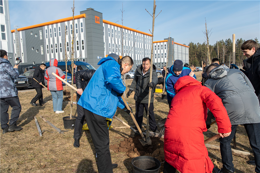 2024年3月12日,中白工業(yè)園首屆中國植樹(shù)節活動(dòng)在園區舉行,中白警務(wù)合作中心工作組組長(cháng)李光輝、副組長(cháng)薄士德,園區管委會(huì )第一副主任亞基莫夫、副主任塔巴紐霍夫、園區開(kāi)發(fā)公司第一副總經(jīng)理卡羅杰耶夫、副總經(jīng)理衛建華、副總經(jīng)理杰特克夫等領(lǐng)導參加植樹(shù)活動(dòng),活動(dòng)由開(kāi)發(fā)公司副總經(jīng)理任飛主持。