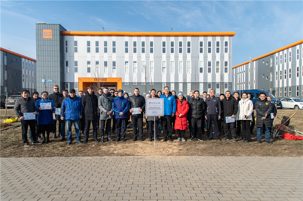 活動(dòng)中,李光輝組長(cháng)與任飛副總經(jīng)理為警民同心林揭牌,李光輝向參與本次植樹(shù)活動(dòng)的單位領(lǐng)導及代表表示感謝,并表示,本次植樹(shù)活動(dòng)旨在進(jìn)一步增進(jìn)中白友誼,更好的服務(wù)“一帶一路”建設和園區的高質(zhì)量和綠色發(fā)展,希望以后有更多企業(yè)參與到活動(dòng)中來(lái),共建園區平安、綠色家園。