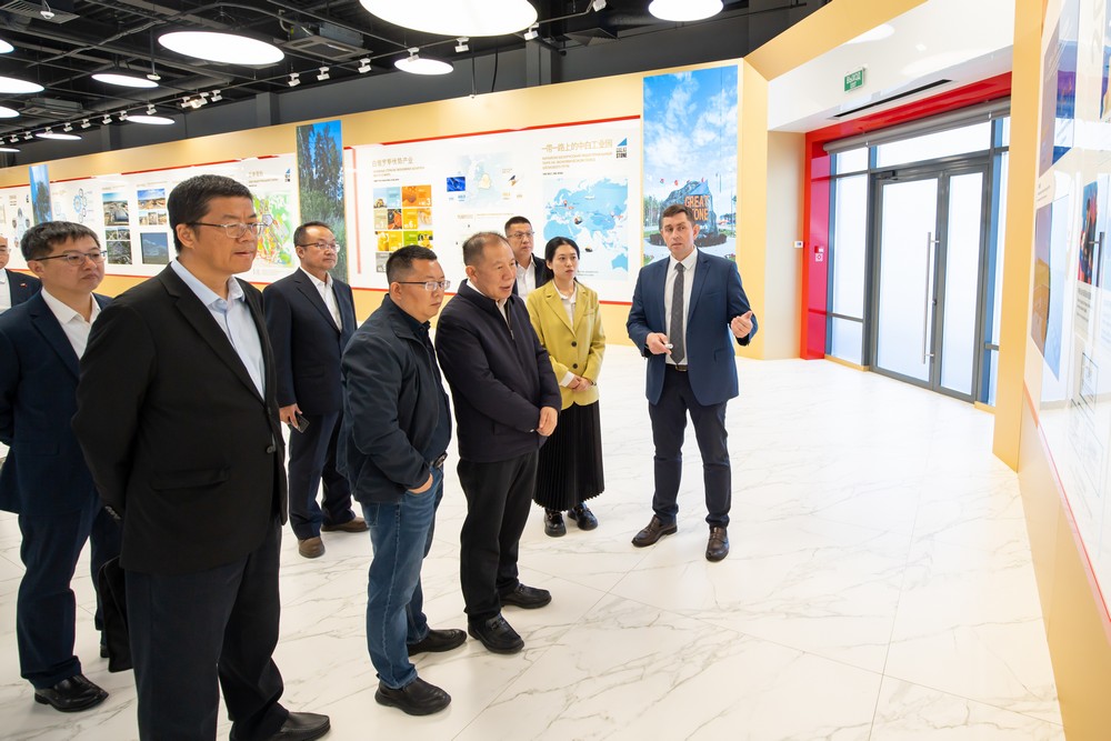 在園區規劃館,亞基莫夫副主任詳細介紹了中白工業(yè)園區的發(fā)展歷程、管理架構、區位優(yōu)勢、基礎設施、投資環(huán)境、優(yōu)惠政策等情況。代表團隨后參觀(guān)了企業(yè)展廳,詳細了解入園企業(yè)的產(chǎn)品成果。