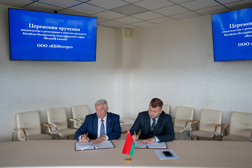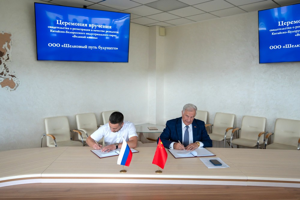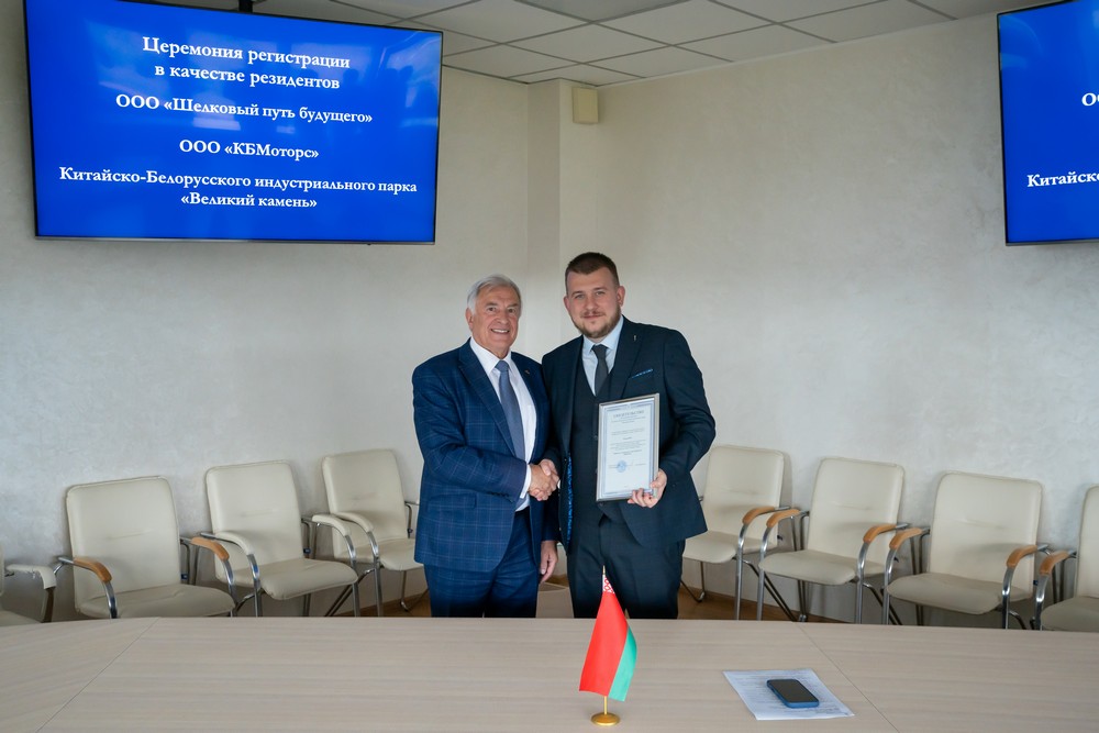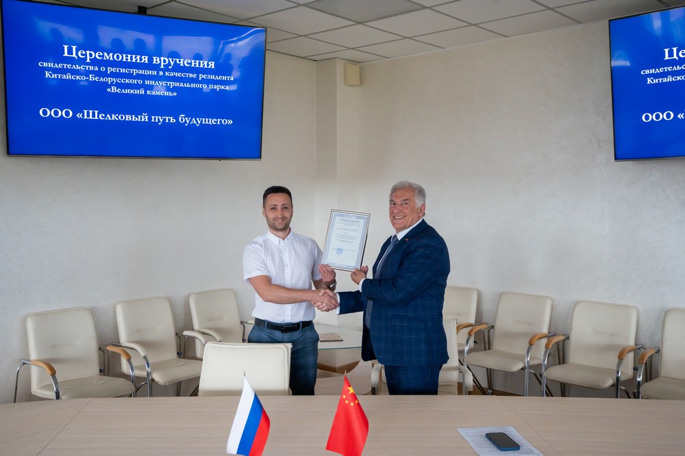 2025年6月30日,中白工業(yè)園迎來(lái)兩家新的居民企業(yè)——中俄合資“未來(lái)絲綢之路”有限責任公司和白俄羅斯“KBMotors”有限責任公司。園區管委會(huì )副主任塔巴紐霍夫向企業(yè)代表頒發(fā)了居民企業(yè)證書(shū)。