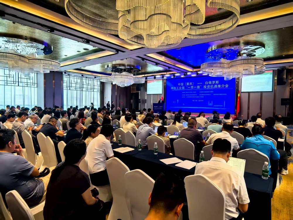 9月3日至5日,中白工業(yè)園在重慶隆重舉行"一帶一路"投資機遇推介會(huì )。園區管委會(huì )副主任雷琴科率領(lǐng)代表團,與園區開(kāi)發(fā)公司北京代表處首席代表李瀟瀟共同出席本次活動(dòng)。