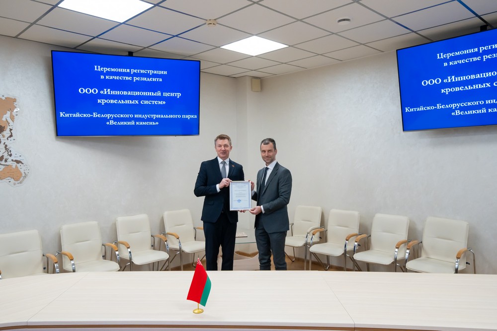 2025年11月27日,白俄羅斯企業(yè)"屋面系統創(chuàng )新中心"有限責任公司正式注冊成為中白工業(yè)園居民企業(yè)。園區管委會(huì )第一副主任列別江采夫向公司總經(jīng)理安東諾維奇頒發(fā)了居民企業(yè)證書(shū)。