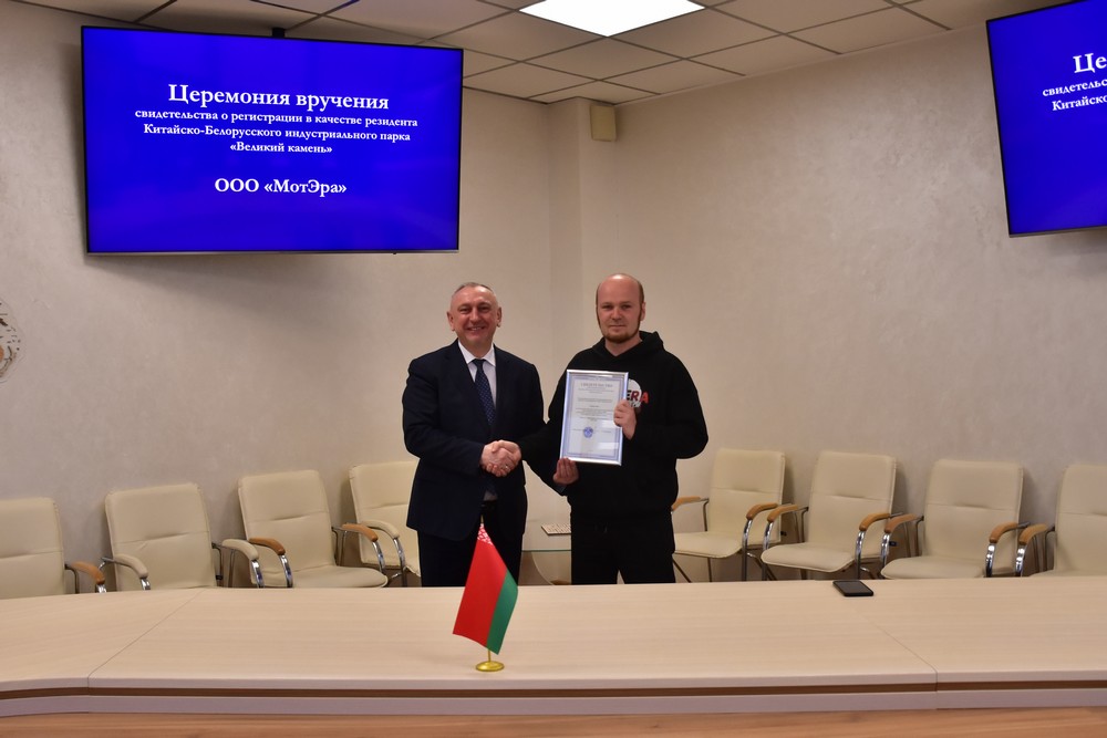 2025 年3月24日, 摩托時(shí)代有限責任公司入駐中白工業(yè)園,成為園區居民企業(yè)。園區管委會(huì )主任雅羅申科向摩托時(shí)代總經(jīng)理考爾科頒發(fā)居民企業(yè)證書(shū)。 據悉,摩托時(shí)代有...202503-24