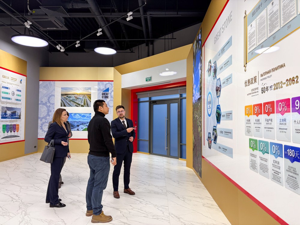 2025 年4月3日,“未來(lái)交通”有限責任公司(俄羅斯)總經(jīng)理卡薩連科一行訪(fǎng)問(wèn)中白工業(yè)園。園區管委會(huì )主任雅羅申科、開(kāi)發(fā)公司副總經(jīng)理杰特科夫陪同考察。在園區規劃館,雅羅...202504-03